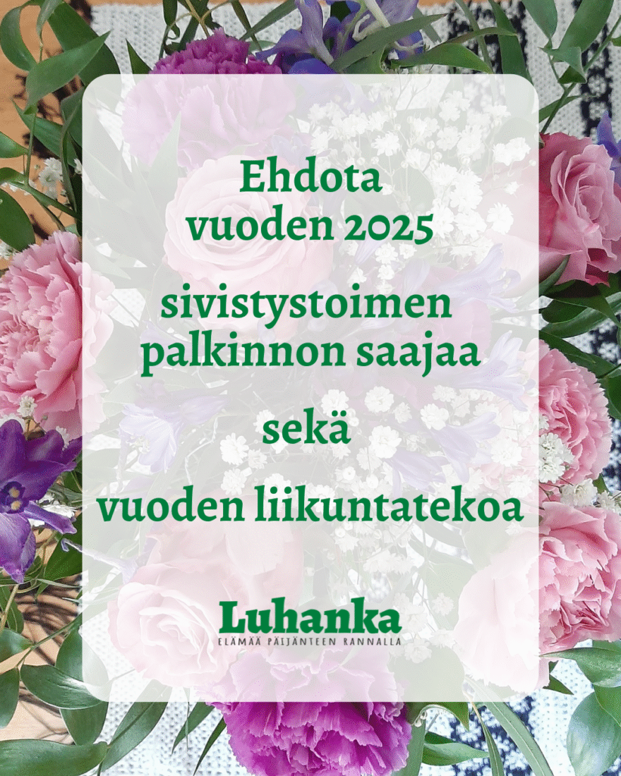 Ehdotukset kerätään ja esitellään loppuvuoden aikana Luhangan sivistys- ja hyvinvointilautakunnalle, joka tekee päätöksen palkittavista.