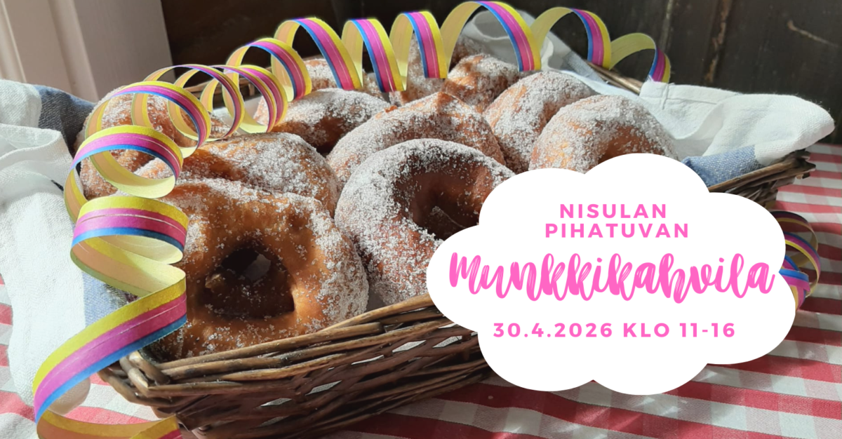 Nisulan Pihatuvalla (Salmelankyläntie 157, Tammijärvi) juhlitaan vappua vappuaattona torstaina 30.4. munkkikahvilan merkeissä klo 11-16.