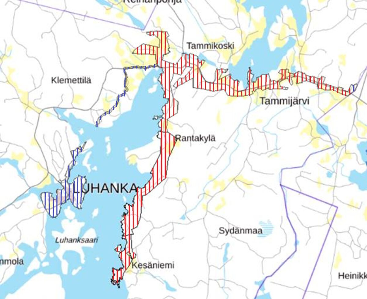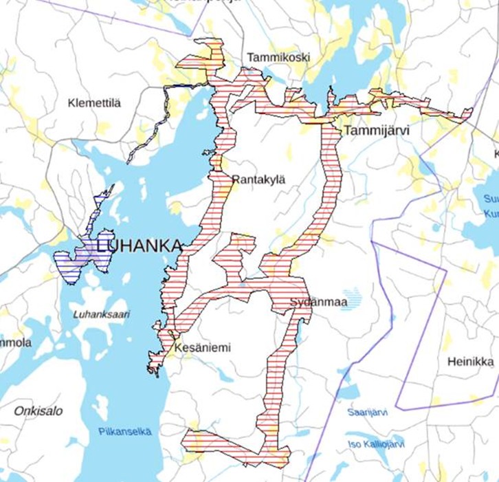 Tarkemman kartan saadaksesi (kiinteistörajakohtainen) ota yhteyttä Luhangan kuntaan: Yhteystiedot